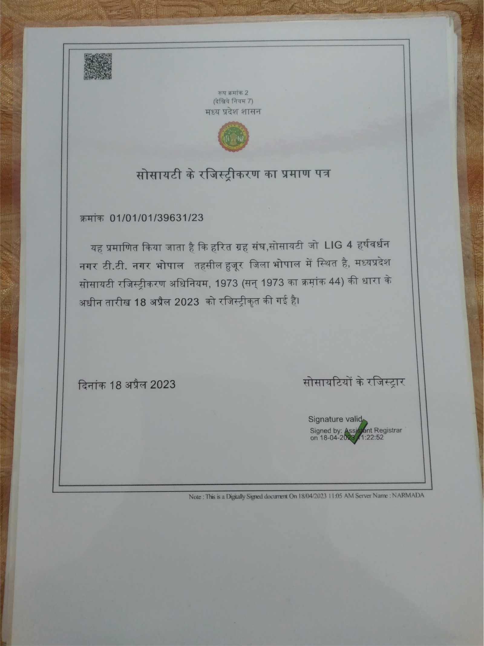 हरित गृह संघ, भोपाल स्थित एक पंजीकृत सामाजिक संस्था है,
